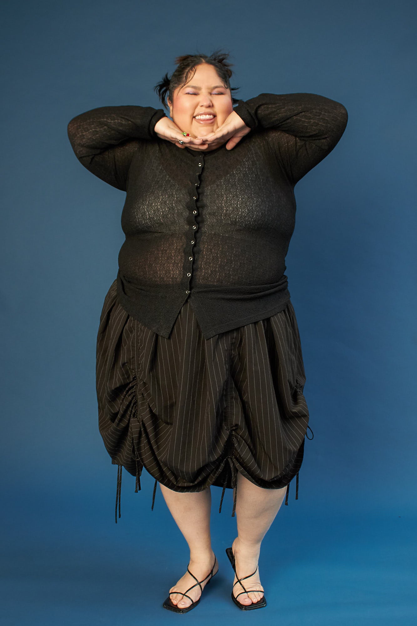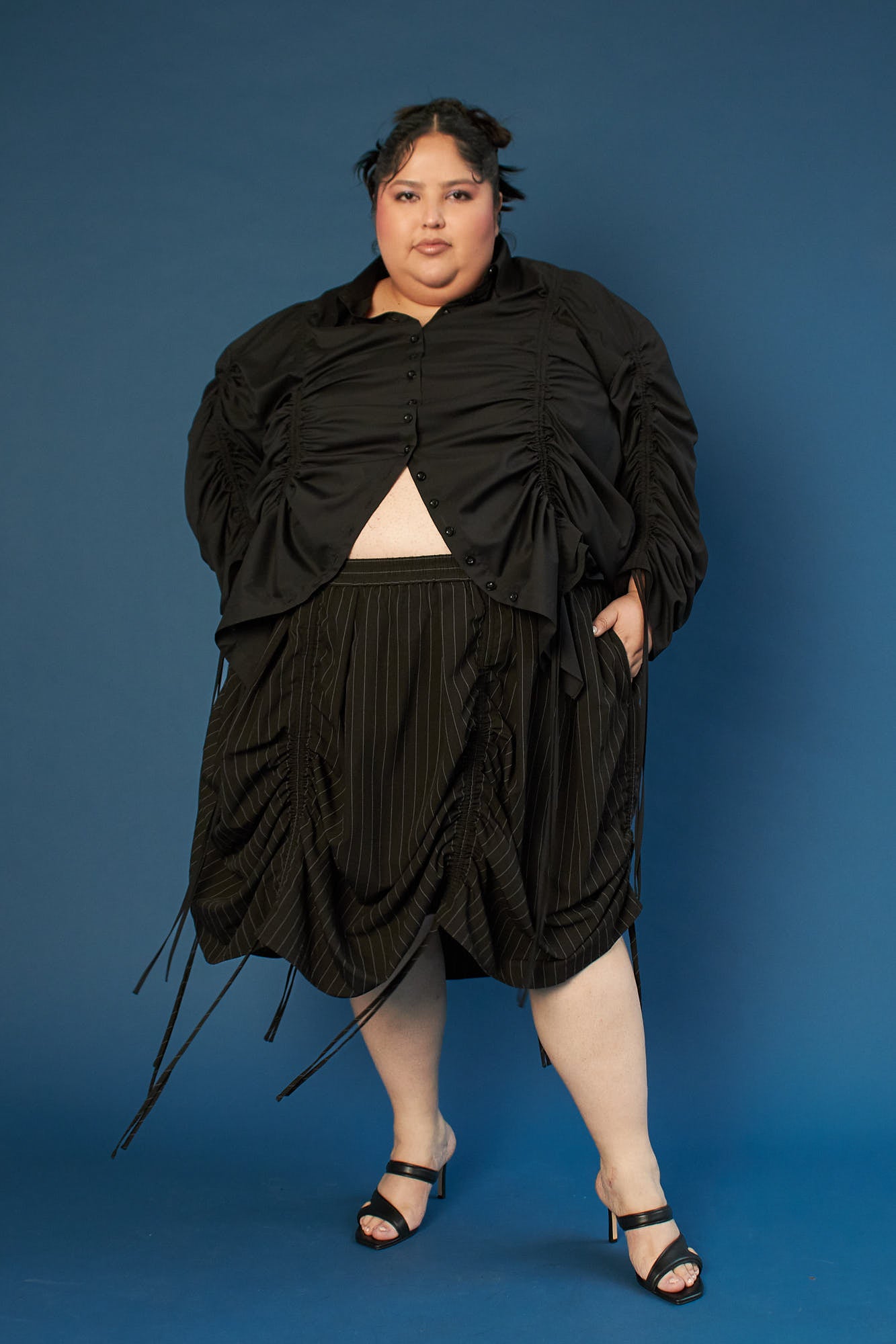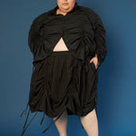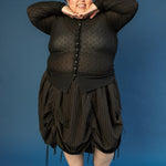 The Lucy Skirt takes inspiration from vintage theater curtains- dramatic, nostalgic, and full of movement. Cut in a circle skirt silhouette, it features six adjustable satin drawstrings that let you sculpt the shape to your liking: wear it smooth and long, or gather the sides for a ruched, textural effect. Tie up one section for an asymmetrical twist or cinch all six for a sculpted mini look. Lucy is endlessly transformable—made to shift, move, and play with you. Available in plush, luxe, silk velvet.